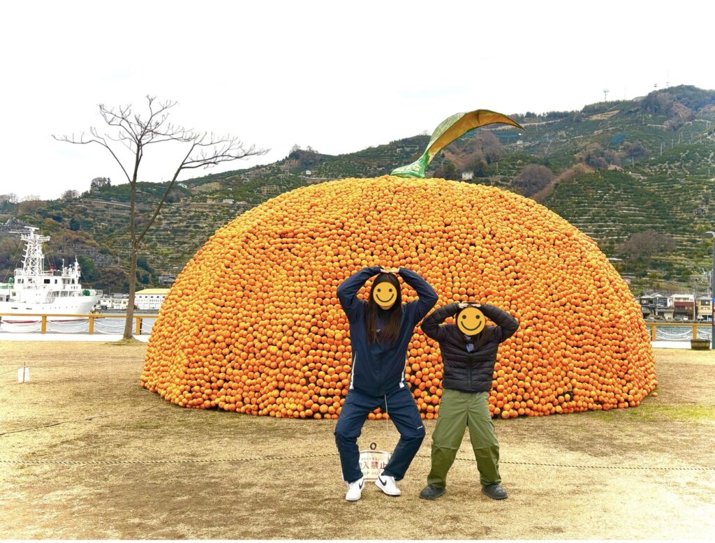 広がる芝生広場に、期間限定で、大きいみかんのオブジェがありました!