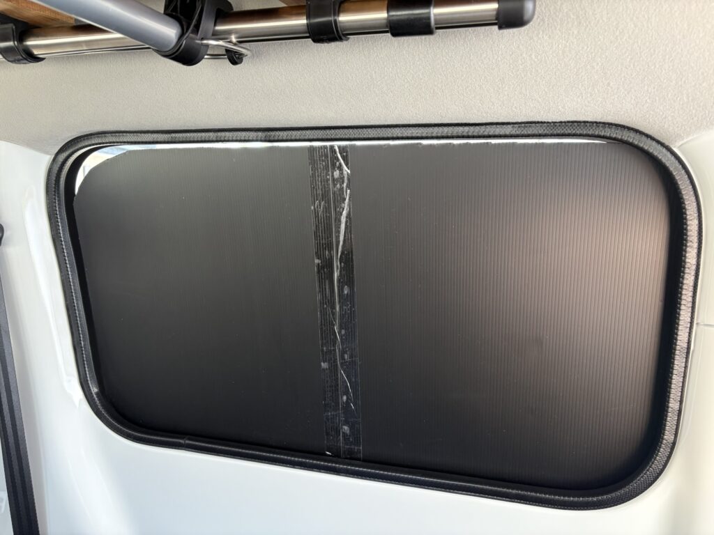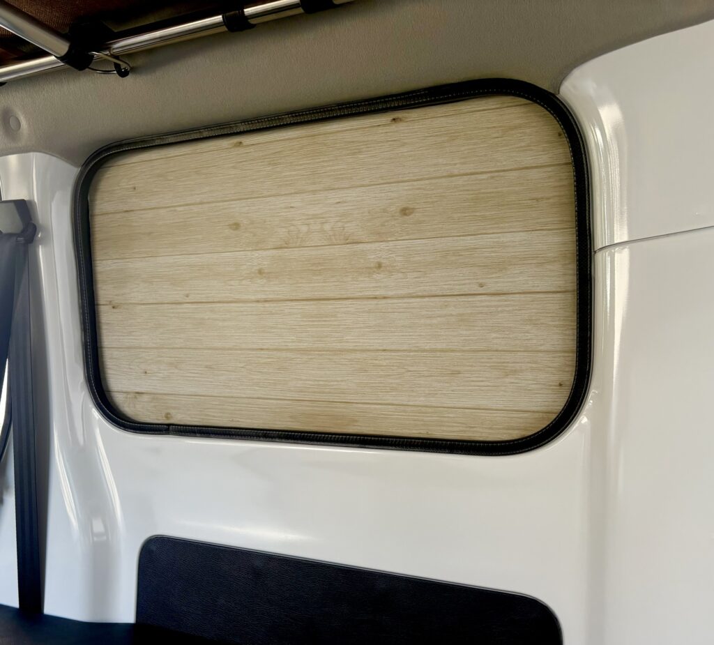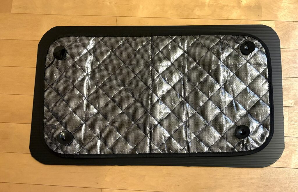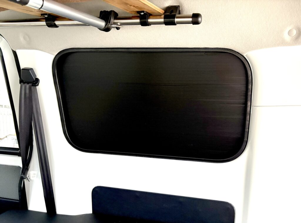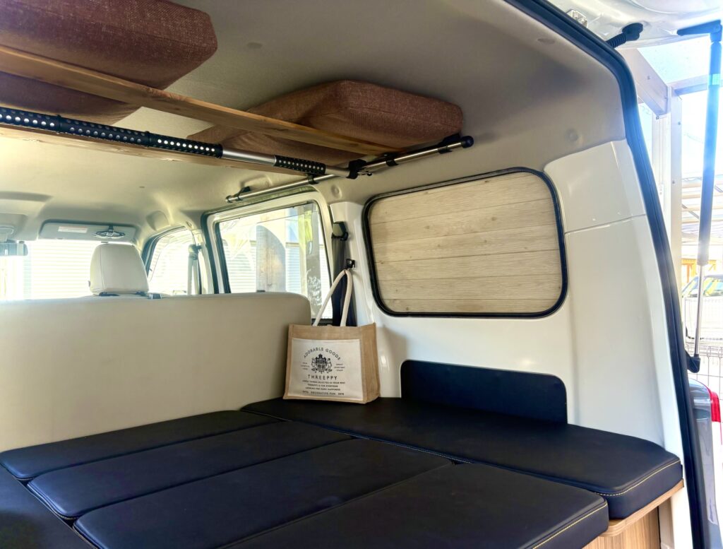 シート貼る前の真っ黒状態より車内が明るくなりました。これで、車内での休憩や、車中泊、またちょっと気分良く過ごせそうです!
