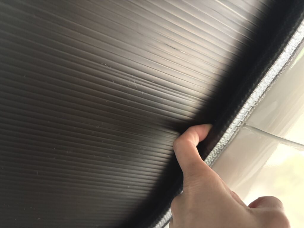運転席側のリアサイドの窓、遮光シェードを貼ったまま、しばらく気づかずに運転してました。