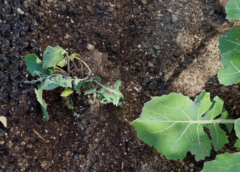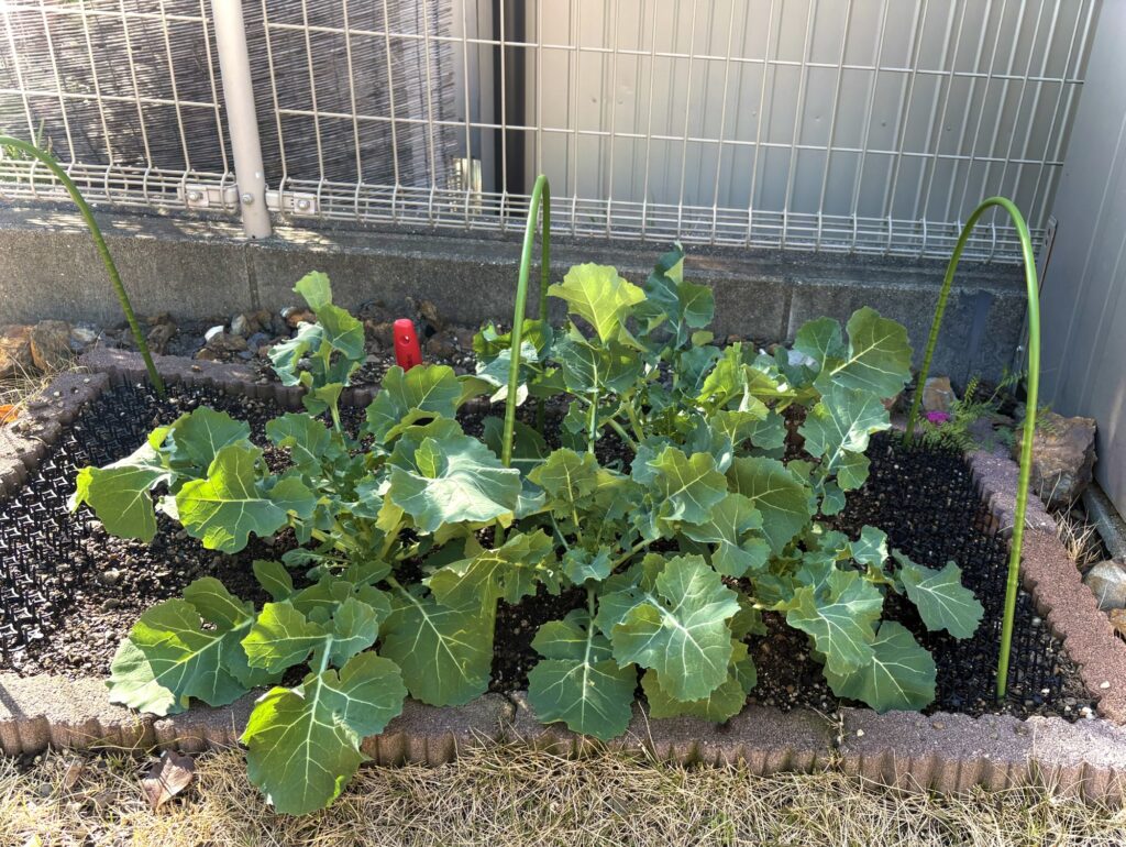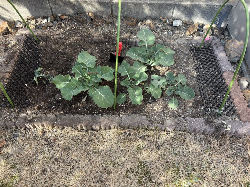 思っていたより成長スピードが遅かったですが、まあまあ順調に育ちました。本葉が3~4枚になった12月中旬、庭に定植しました。